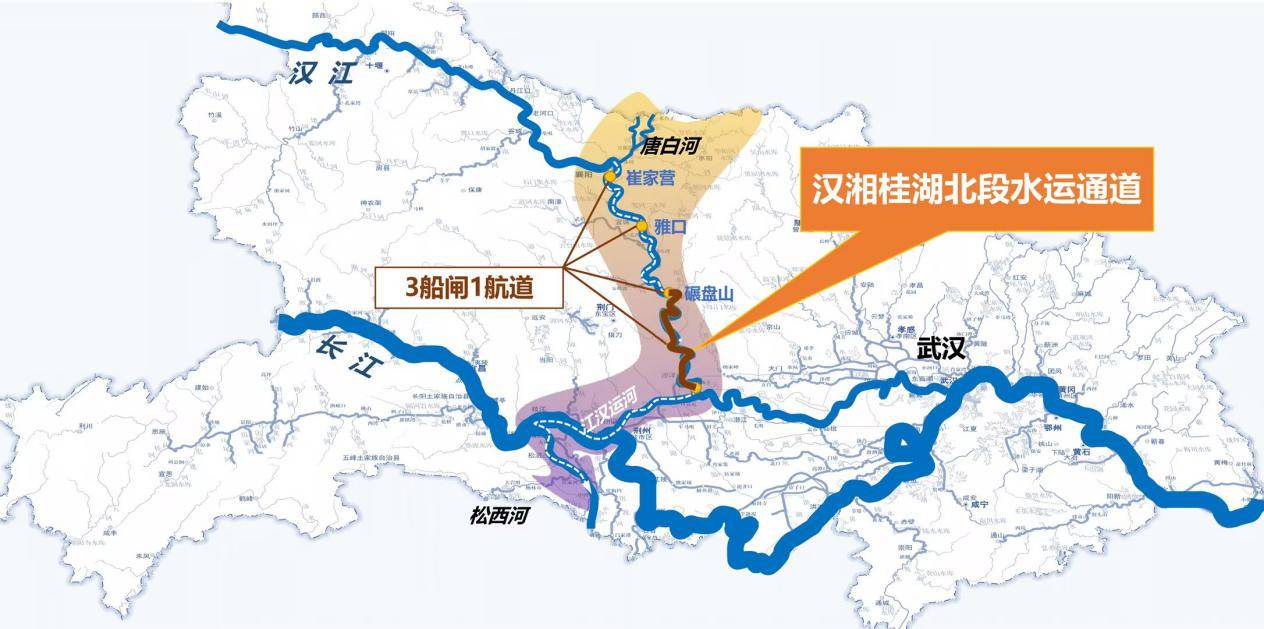 汉江崔家营枢纽二线船闸工程也是全国综合交通网四纵“汉湘桂内河航运大通道”湖北段的重要节点项目,是加快建设“水运上的湖北”,推动湖北港航业高质量发展的重要抓手。“汉湘桂内河航运大通道”全长约3200公里,规划起点位于陕西安康,终点位于广西钦州,沿线途经陕西、湖北、湖南、广西等多个省份,包括汉江、湘桂运河、平陆运河及相关支流。其中,湘桂运河是唯一新建的人工运河,湖北段涉及汉江、唐白河、汉北河、松西河、江汉运河等航道,占比接近通道总长的一半。目前,湖北正加快推进汉湘桂内河航运大通道建设,向北畅通汉江、唐白河,向南抓住平陆运河、湘江航道建设契机,主动融入粤港澳大湾区、北部湾。