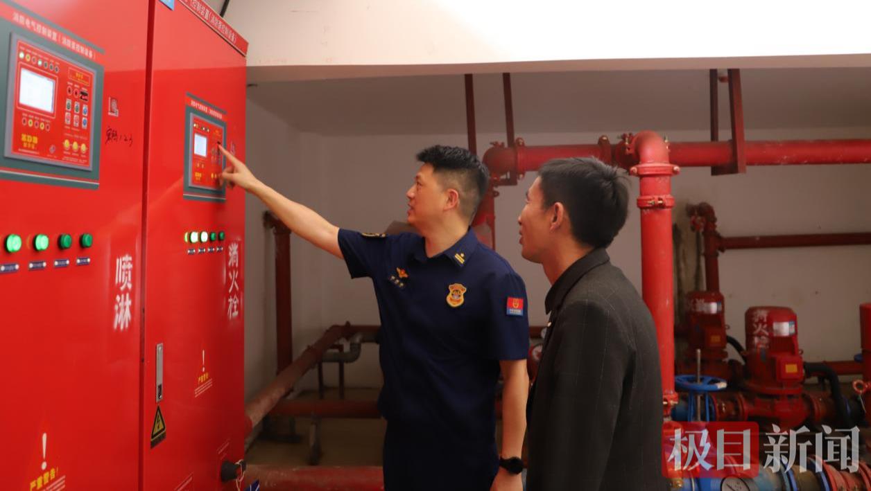 消防监督员查看养老福利机构消火栓泵运行情况(通讯员供图)