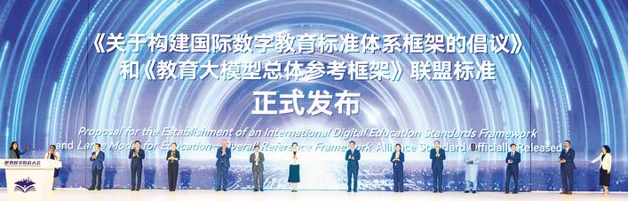 闭幕式现场发布《关于构建国际数字教育标准体系框架的倡议》。(湖北日报全媒记者 何宇欣 摄)
