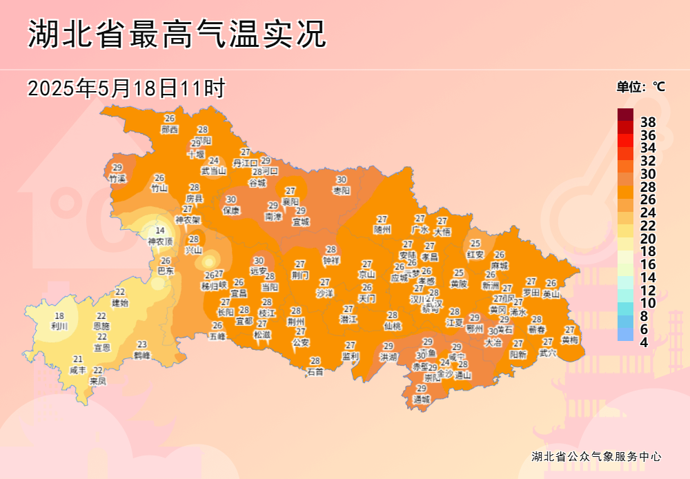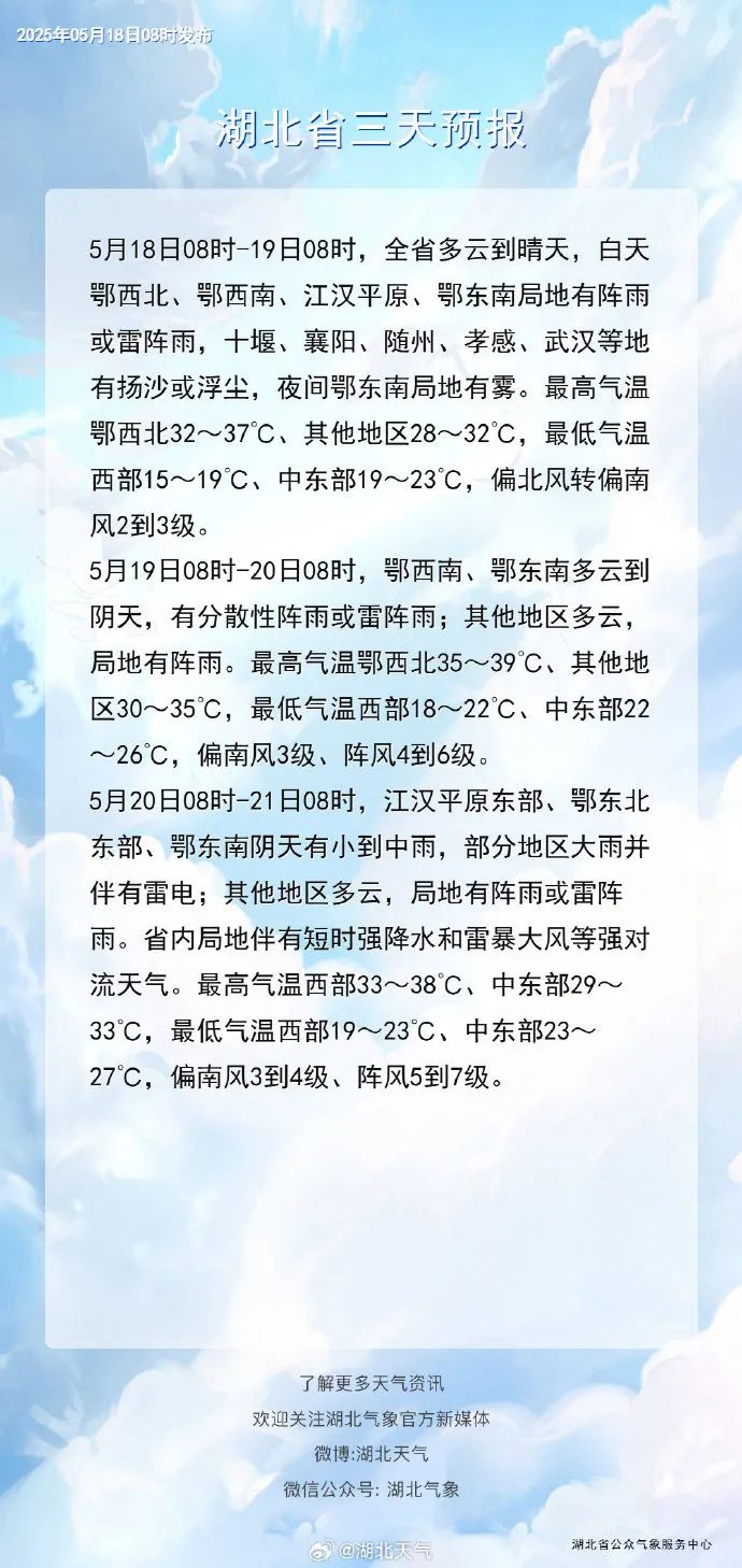 今天鄂西北最高气温32~37℃
