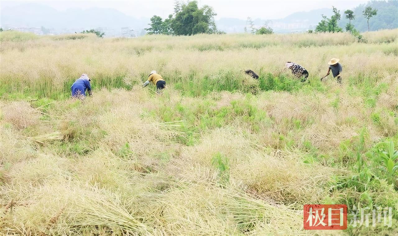 村民正在收割油菜
