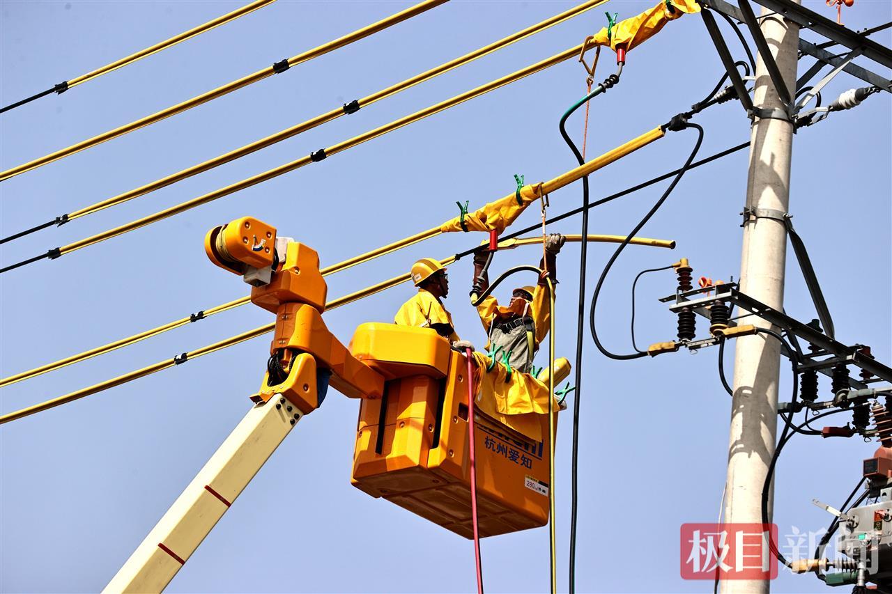 四人从绝缘斗臂车下来时,豆大的汗珠从脸颊滑下,脱下绝缘服,里面的衣服已全部湿透。