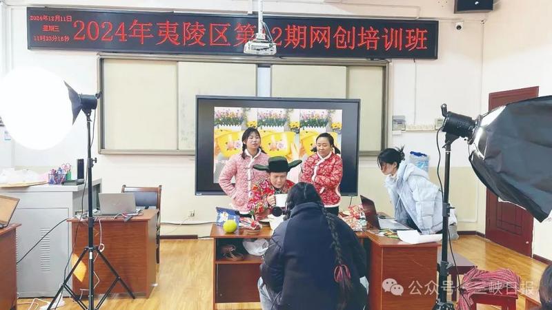 ▲2024年12月夷陵区开展网创(直播带货)培训,学员分组实施夷陵特产带货销售。