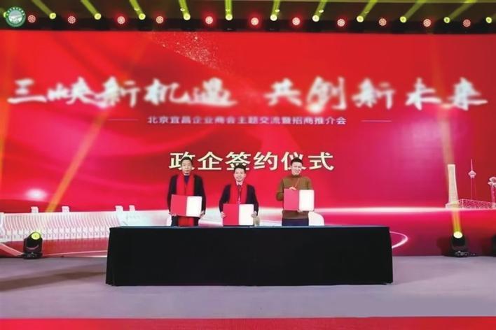 ▲春节前夕,宜昌相关部门在京组织政企签约仪式。市人民政府驻北京联络处供图
