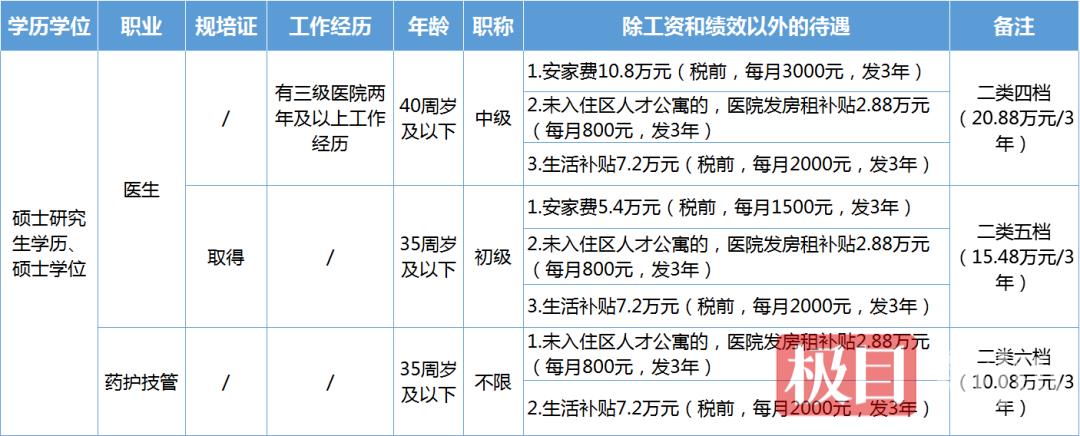 硕士研究生:年龄在35周岁及以下(1990年1月1日及以后出生);取得中级职称(主治医师)且有三级及以上医院两年及以上工作经历的,年龄可放宽到40周岁(1985年1月1日及以后出生)。