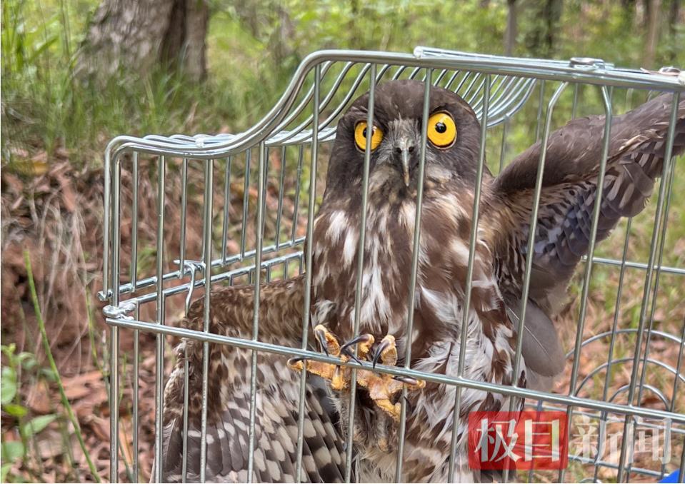 近日,湖北郧西县林业局工作人员接到热心群众来电,称其在小区内捡到一只猫头鹰,工作人员迅速赶往现场,将其转移至鸟笼中接受进一步观察,避免其遭受二次伤害。