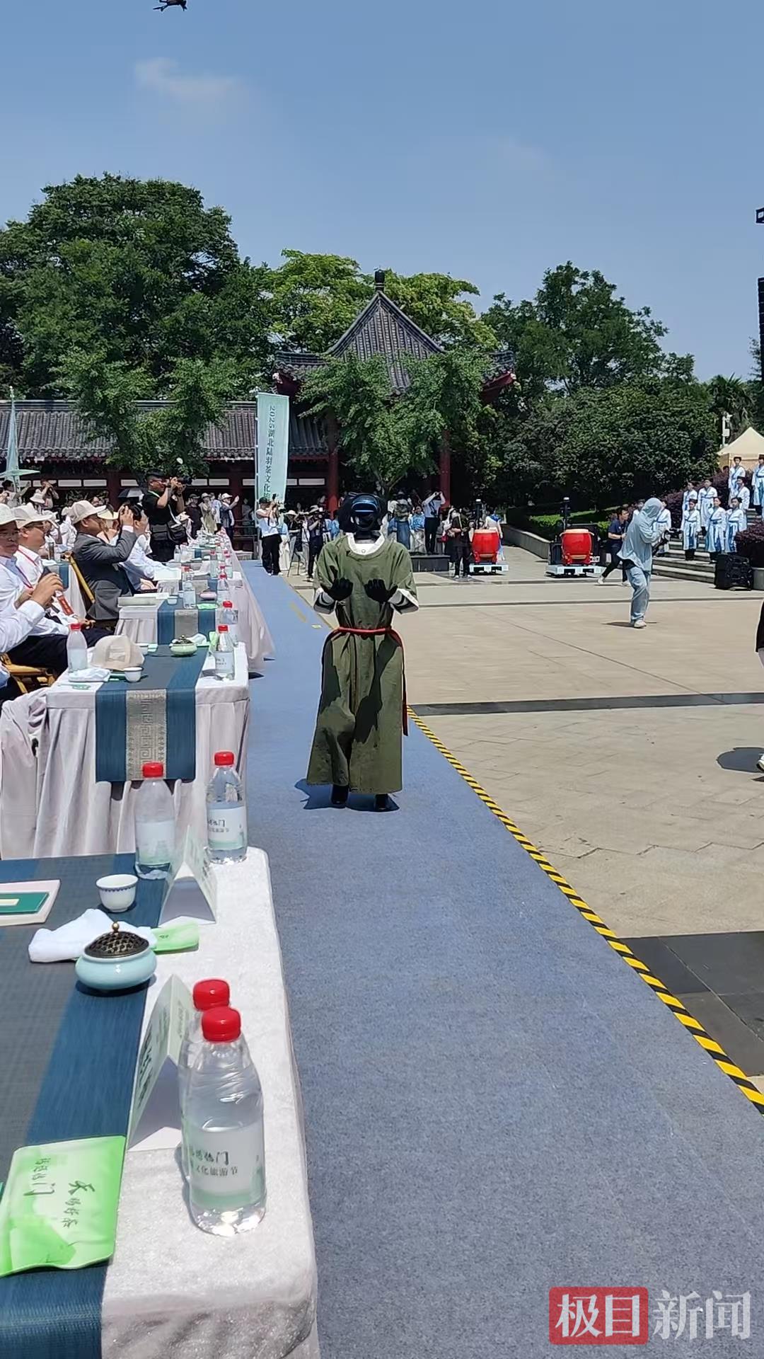 5月19日,2025湖北陆羽茶文化旅游节在天门市开幕。开幕式以“茶”为纽带,串联起陆羽雕像、茶经楼、西塔寺三大文化地标,穿插情景音画、群体楼秀等表演,打造了一场集历史、文化、艺术于一体的茶文化盛宴,观众移步换景,沉浸式体验古风茶会。此外,天门本土企业制造的智能机器人以鼓手、茶人身份惊喜现身,为这场盛宴增添了科技感。