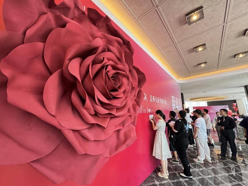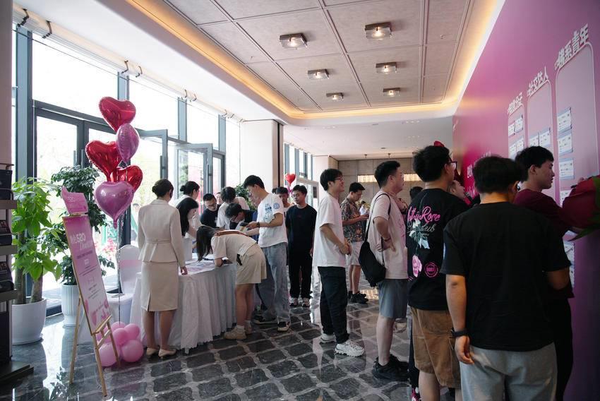 下午2点,男女嘉宾陆续到场,在江畔明庐潮韵美学馆的签到墙上,写下对爱情的向往。