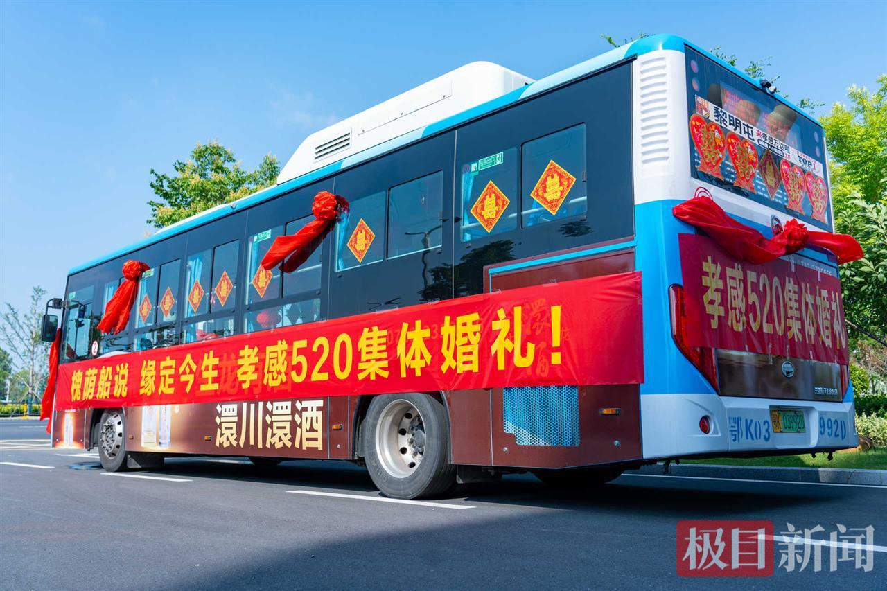 特别为这一天打造的520路婚庆专列从登记处幸福启航,载着新人们的欢笑声,缓缓驶向澴河岸边的槐荫船说广场,将这份甜蜜撒向整座城市。