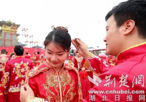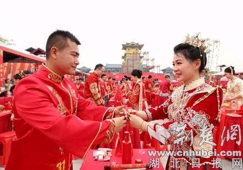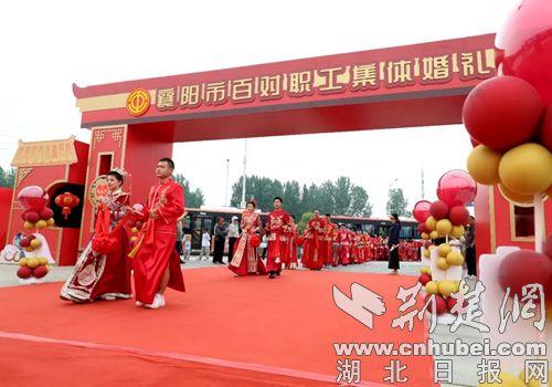荆楚网(湖北日报网)讯(通讯员 李兴会、杨东、黄瑜)5月17日,由襄阳市总工会主办的“襄聚良缘 匠心筑爱一一我们结婚吧”襄阳市百对职工集体婚礼在盛世唐城景区华彩启幕。