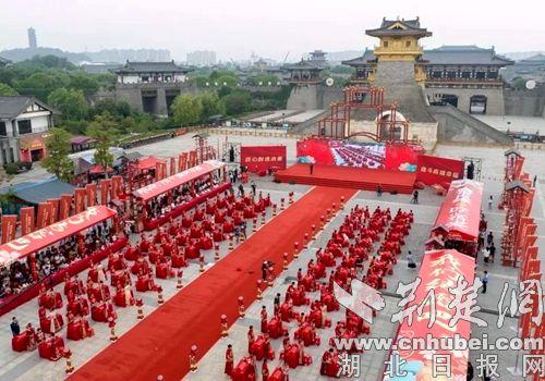 襄阳市百对职工集体婚礼在盛世唐城景区华彩启幕。通讯员供图