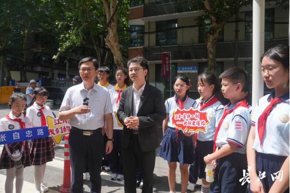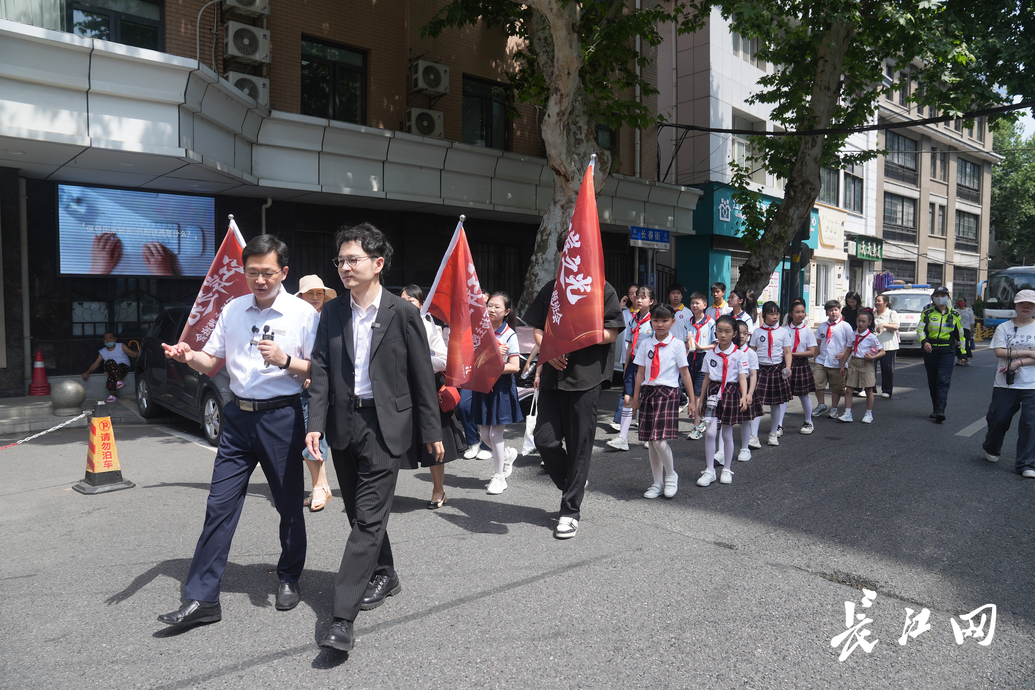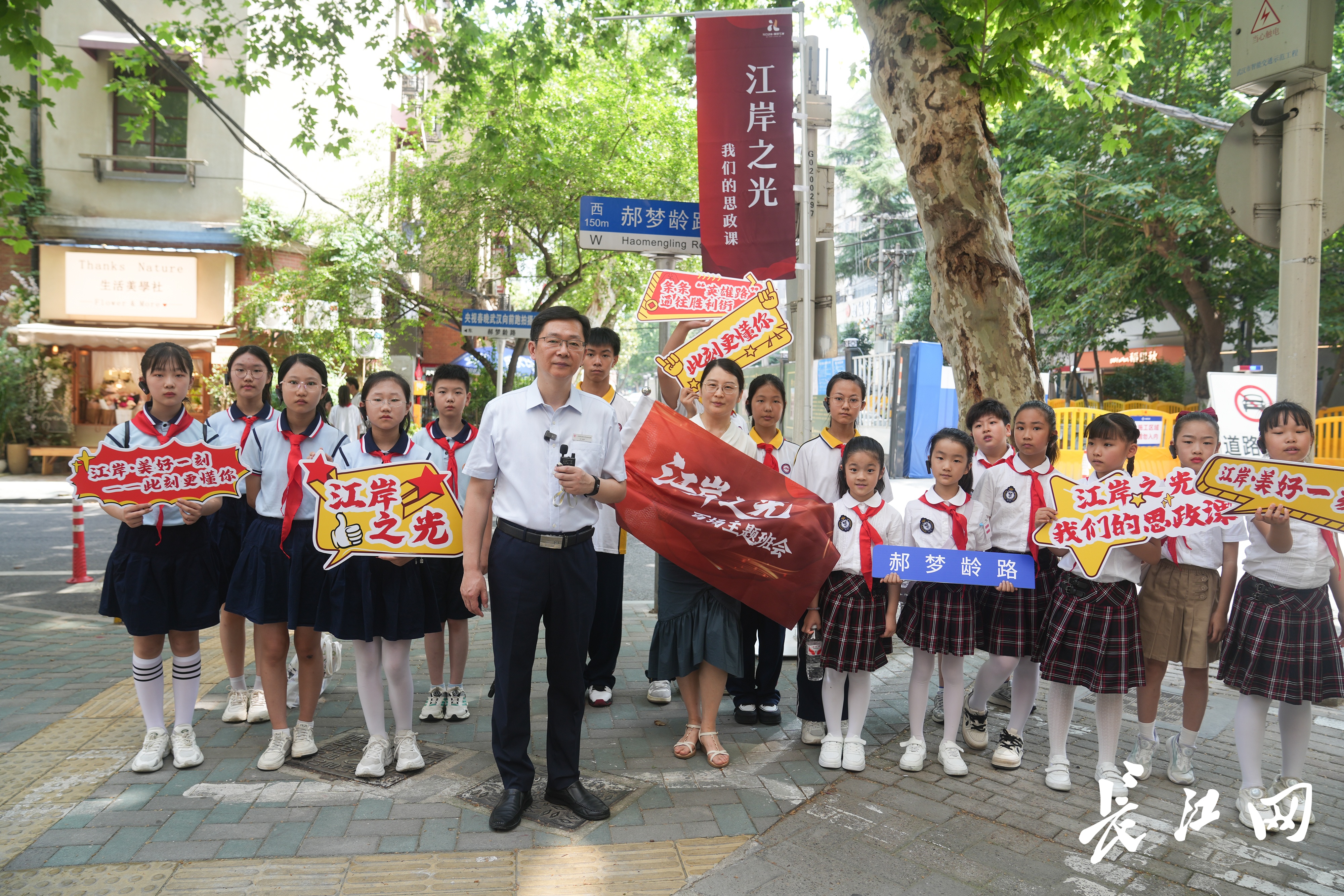 “听了陆鸣老师说路名,我们都想实地去看看。”启动仪式后,“江岸之光”全区中小学校百场主题班会首场在孩子们的期待中开启,参与活动的师生代表与嘉宾从纪念馆出发,沿胜利街实地探访郝梦龄路、张自忠路、陈怀民路等“英雄路”。