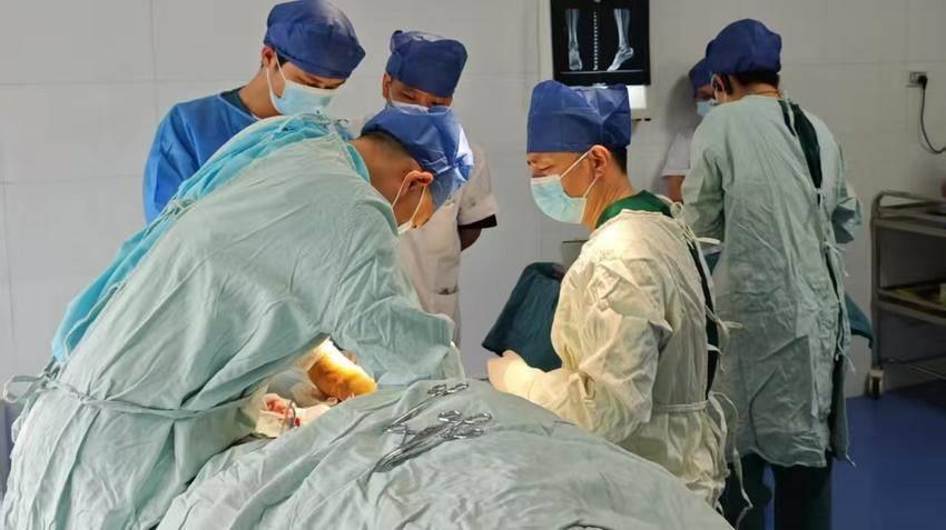 看到家属恳切的眼神,听到老人及家属“就在这儿治”的坚定话语,医护团队毅然选择迎难而上。为保障手术安全,罗路迅速集结内科专家团队,与麻醉科展开联合会诊,并向医共体上级医院——孝感市中医医院申请技术援助。内科主任陈琼全程监护心血管风险,麻醉科李春霞、晏梦萍精准调控麻醉剂量,手术室护士长何彩霞率队细致检查抢救设备,并多次演练手术应急预案,确保万无一失。