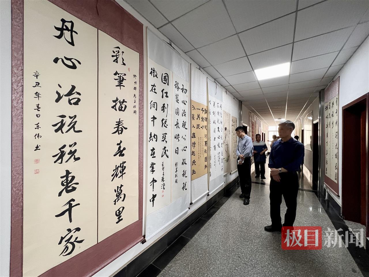 “丹心治税 税惠千家”“春风荣税苑 广水壮潮生”,步入广水市税务局一楼大厅,仿佛步入了传统文化的展厅。几十幅书法、绘画作品,均由该局工作人员创作。据介绍,该局于2019年成立广水市诗联书画税务分会。多年来,坚持把诗词、楹联、书画与税收宣传工作紧密结合。截至目前,已连续举办5届“税务杯”全国诗词楹联大赛及各类楹联、书法活动。