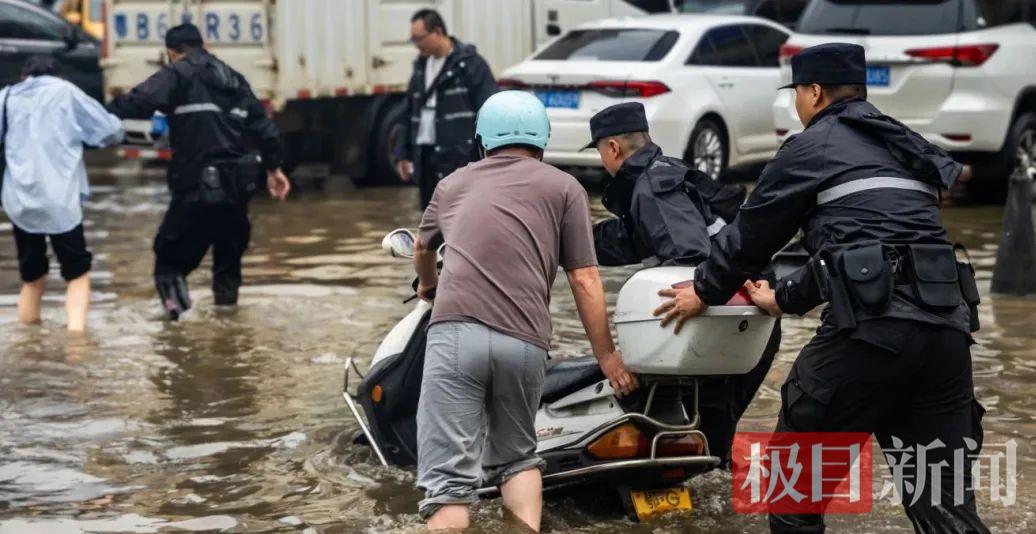8时40分,鄂州市公安局特警支队立即启动应急预案,派出多组警力携带救援装备,围绕积水严重路段展开巡逻救援。