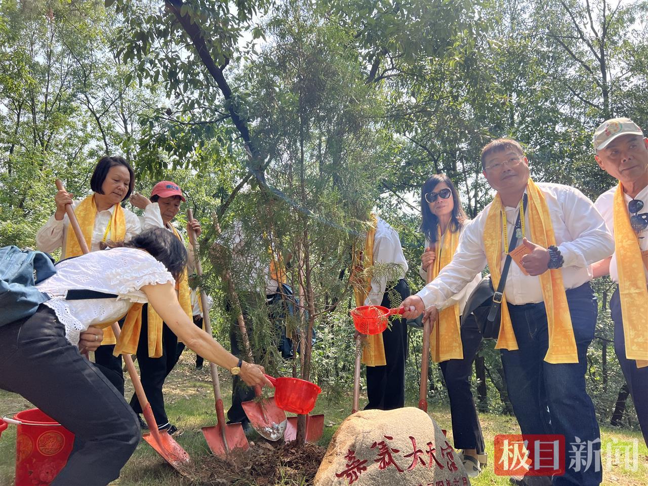 阳光透过枝叶的缝隙洒下,形成一片片光影。台湾同胞们携手合作,他们挥锹铲土、扶苗填坑、提桶浇水,每一个动作都饱含着深情与期待。泥土的芬芳与大家的汗水交织在一起,一棵棵树苗在谒祖广场旁“安家落户”,在微风中轻轻摇曳,仿佛在诉说着两岸同胞的深厚情谊。