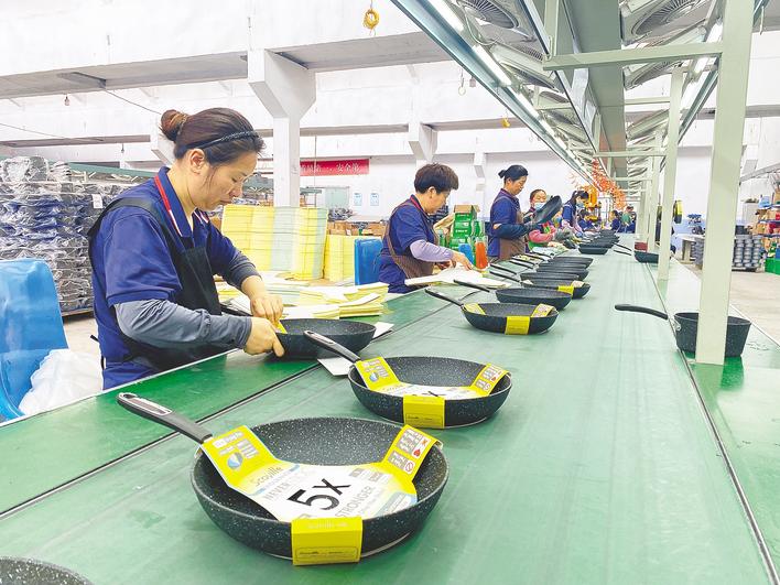鼎呱呱厨具包装车间生产线。(湖北日报全媒记者 张源 摄)