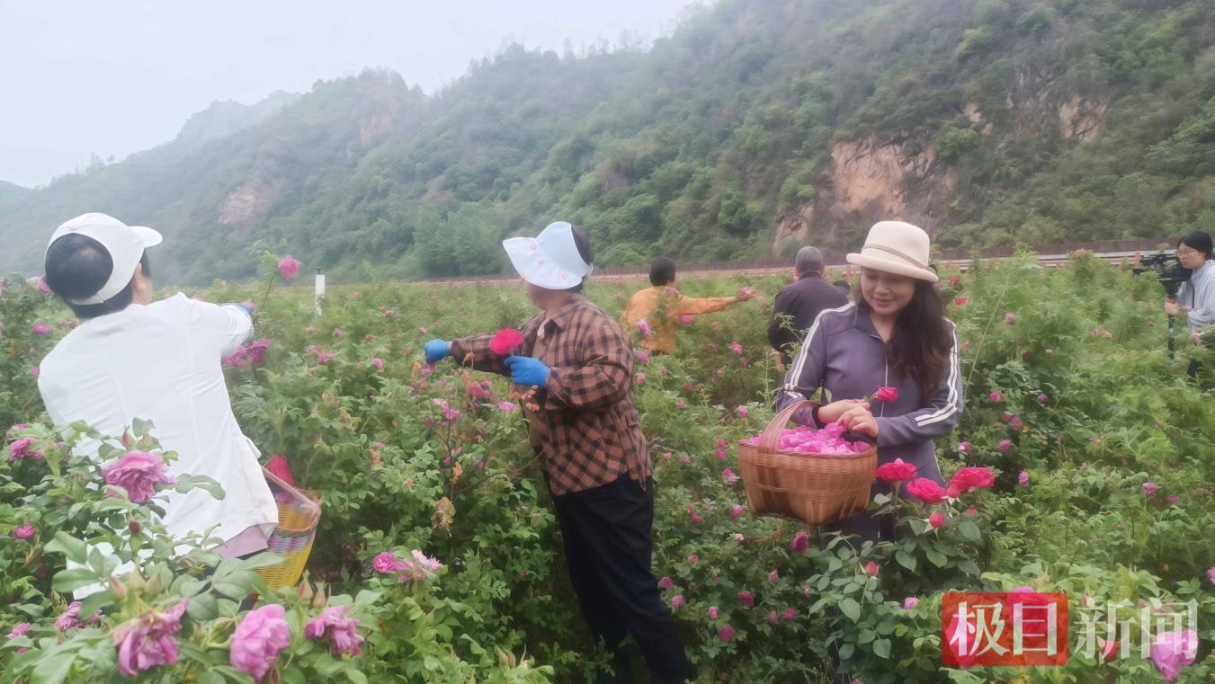 清晨,当第一缕阳光穿透薄雾洒向山谷,垭子湾村村民邢友红等20多名采花工人已穿梭在花丛中,随着一朵朵花冠就被采摘下来,竹篓里很快就铺满了艳丽的玫瑰花。邢友红说:“在家门口从事这样的工作,不仅环境好,而且每天能挣百元左右。”