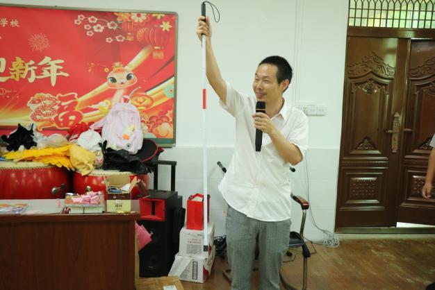 盲杖轻叩地面的笃笃声,与孩子们清脆的欢笑声在咸宁市特殊教育学校交织。5月21日,第九期“行走的追光讲堂”在此开讲。在盲人教师周景润、咸宁市特殊教育学校校团委书记吴颖的现场统筹下,这场由共青团咸宁职业技术学院委员会、周景润追光育人工作室联合主办的活动,以“党建+志愿+思政”创新模式,为特殊儿童点亮成长灯塔,打造湖北特殊教育协同育人新样本。