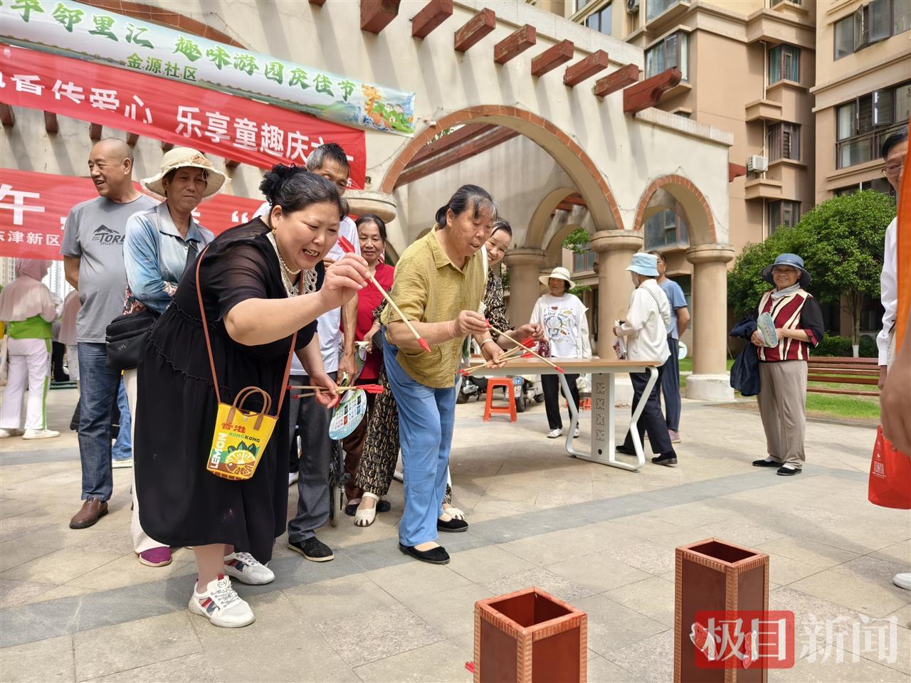 “投中了三个,领奖品喽!”5月27日上午,湖北襄阳东津世纪城8区新外滩小广场上欢声不断,在湖北襄阳市住房和城市更新局第二房产管理所举办的端午节活动上,78岁的方立玉老人接连掷出手中的木剑,精准落入壶中,围观街坊们爆发出阵阵喝彩。