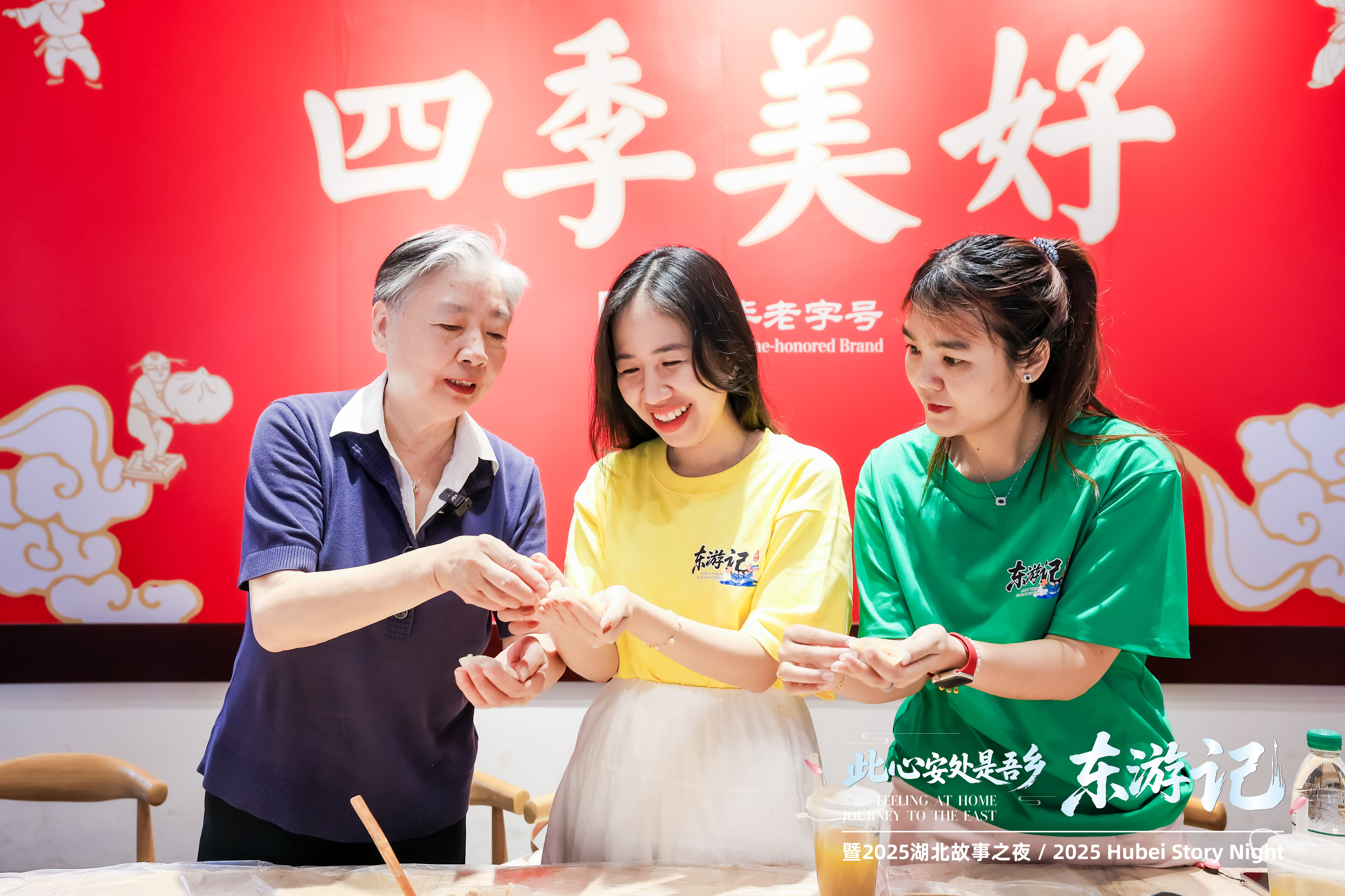 湖北省级非物质文化技艺传承人、武汉四季美饮业有限责任公司董事长徐家莹亲自上场,教大家包汤包的独门绝技。在徐老的指点下,大家终于成功包出了汤包。