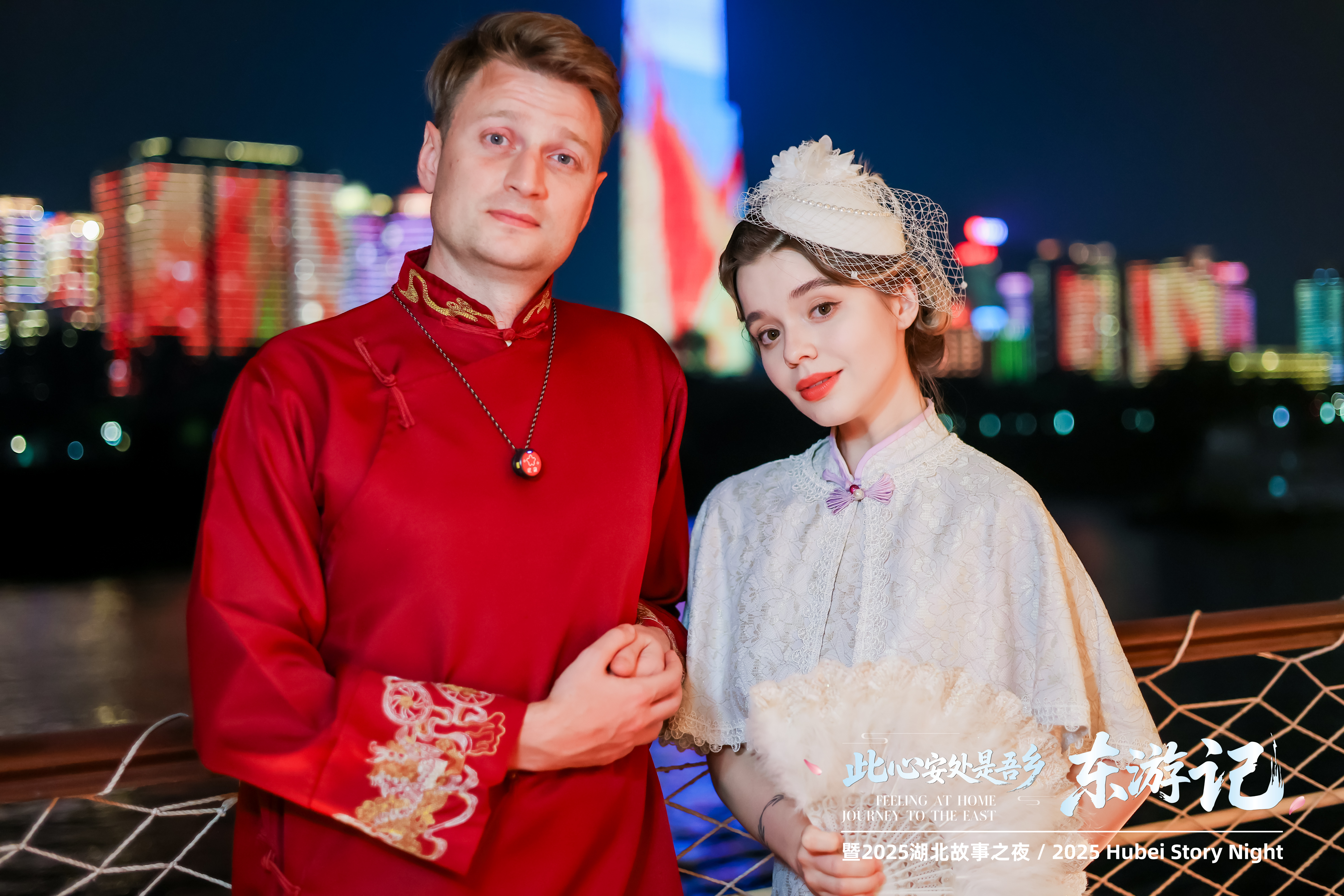 随着两江四岸灯光亮起,参访团成员们登上知音号。外籍体验官们也玩起了换装,无论是一席火红的唐装还是白色羽毛旗袍,都引得不少游客拍照合影。知音号是以大汉口长江文化为背景的漂移式多维体验剧,这种沉浸式的表演方式让大家在互动中感受百年历史风云。唯美的舞台、热情的表演让体验官们跃跃欲试,来自俄罗斯的留学生可欣来到舞台中央,与演员共舞,丝滑的步伐、默契的配合,丝毫看不出来是即兴起舞,为大家献上一场充满了异域风情的表演,观众响起热烈掌声。