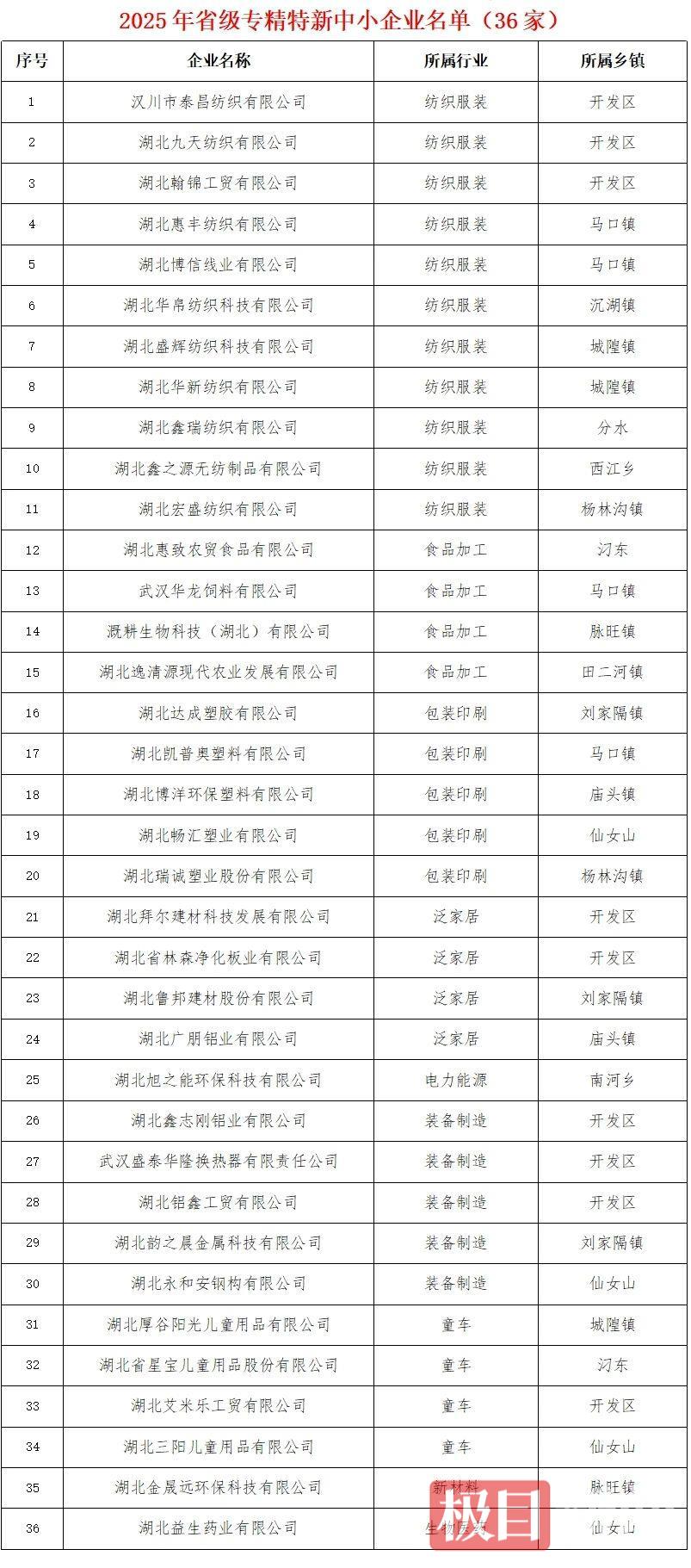 汉川36家企业上榜2025年湖北省第七批专精特新中小企业名单