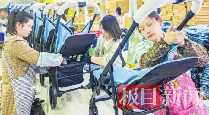 湖北三阳儿童用品有限公司的装配线上,工人们正为德国订单加急组装多功能童车