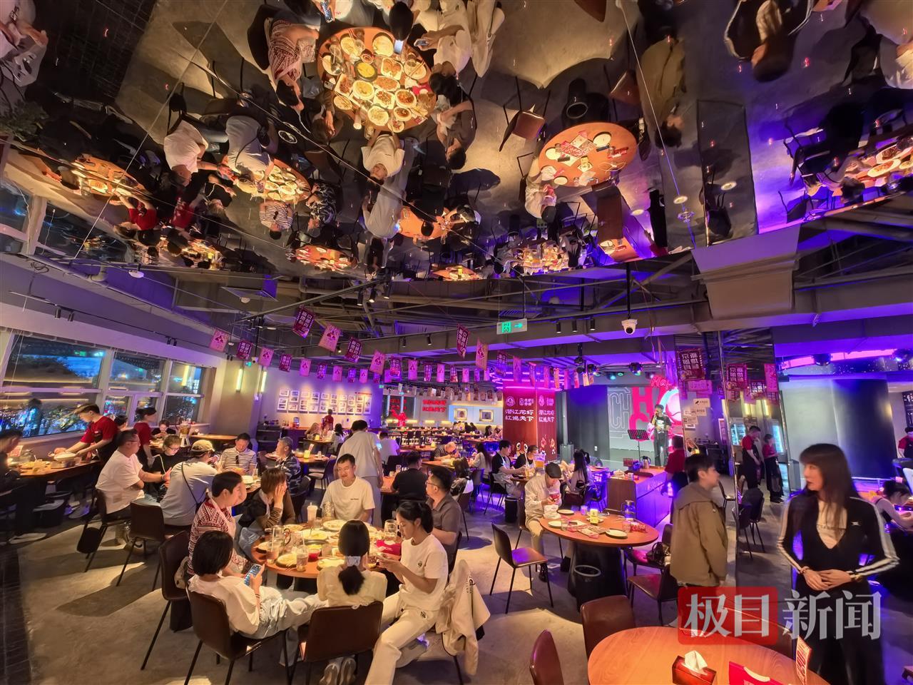 “逛街逛累了,来这儿吃顿小龙虾,感觉特别解压。”傍晚,在附近工作的白领李女士和朋友边剥虾边感慨。此时的排档内座无虚席,驻唱歌手的民谣声、食客的谈笑声与翻炒龙虾的滋滋声交织,烟火气十足。