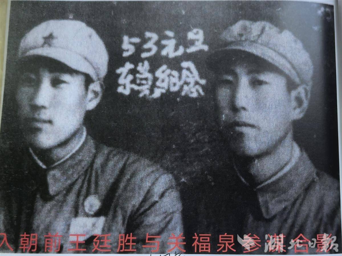 1952年12月30日,第54军134师召开入朝作战动员大会后,部队要求每个人在衣襟内和帽子里写上自己的个人信息。随后,王廷胜拉上战友关福泉,去照相馆拍照。王廷胜说:“那时没有想太多,就是一条心要去朝鲜杀敌立功。”