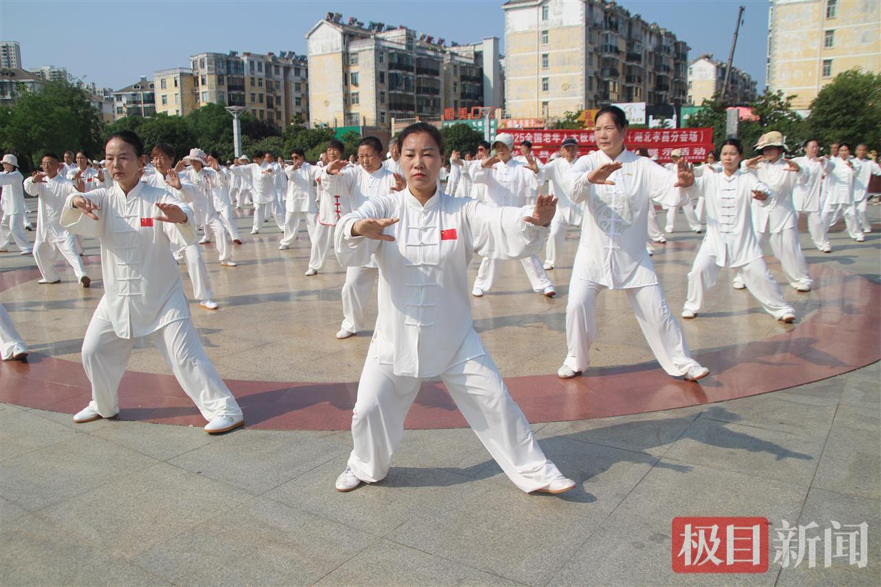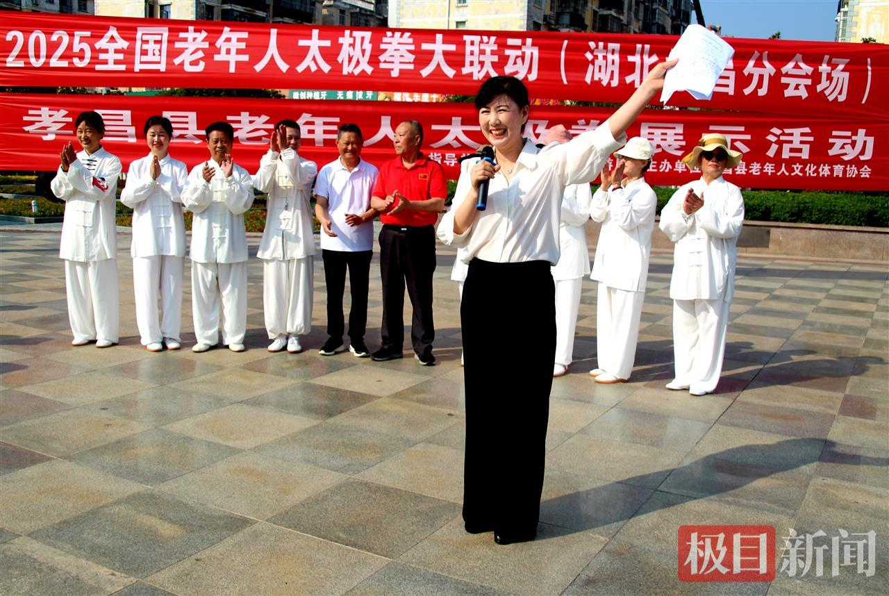 5月29日上午,2025年全国老年人太极拳健身大联动孝昌分会场活动暨县老年人太极拳展示活动,在该县花园广场隆重举行。来自全县8支代表队的151名太极拳爱好者齐聚一堂,以拳会友,共展太极魅力。