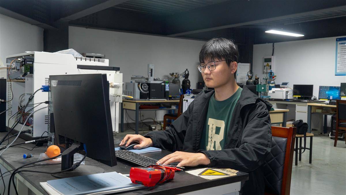 原来,本科毕业前,刘本立就提前加入了张晓星教授团队,师从田双双副教授,主攻环保绝缘气体应用技术领域。2022年,读研前的暑假,导师布置他完成一篇关于温室气体检测的论文。面对挑战,他每天着了魔似得,一起床就坐在电脑前,从早研究到晚,自己琢磨软件、绘图、计算,再到英文翻译、投稿,一气呵成。当年10月,论文就被SCI期刊收录。“这段经历实在太顺利了,让我自信心爆棚,觉得自己特别适合走科研这条路,想要读博深造。”