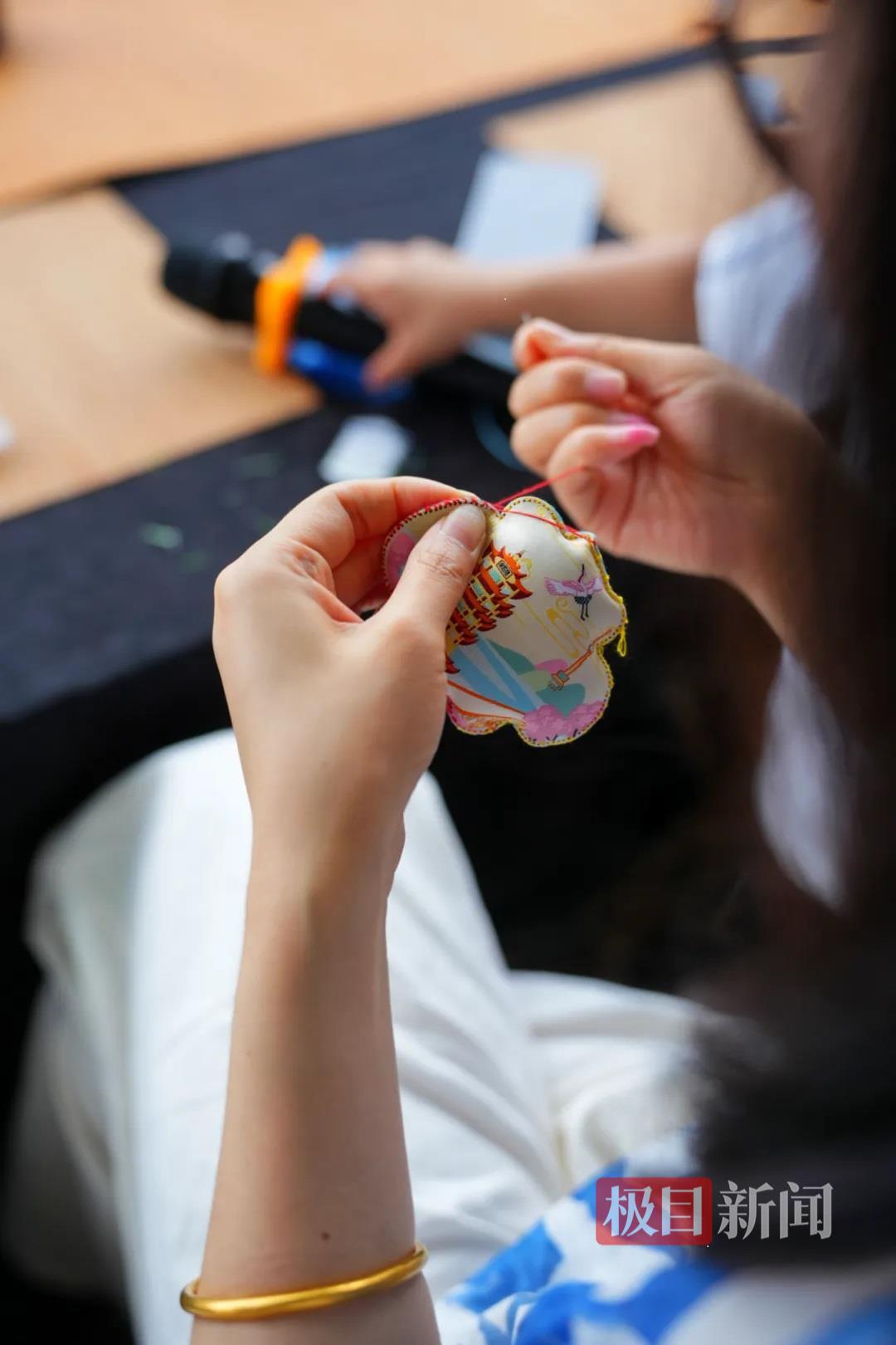 随后,曹老师会手把手指导大家制作香囊,从精选具有驱蚊避秽功效的天然香料,到一针一线地缝制,每一个步骤都蕴含着匠心与巧思。当一个个精美的香囊在您手中诞生,不仅能为孩子的书包增添一抹亮色,挂在家中更是兼具实用与装饰功能,让传统的香气弥漫在生活的每一个角落。