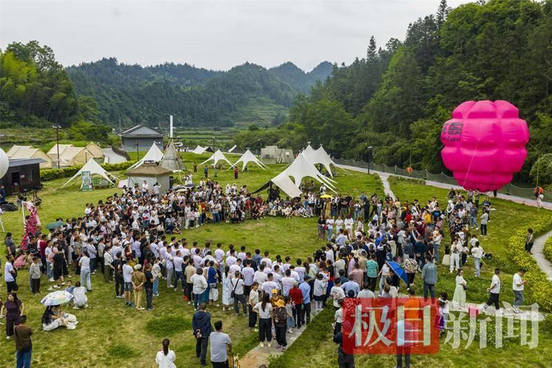 活动当天,200余名单身青年身着土家族服饰,参与景区“端午觅知音”特别企划。杨梅古寨景区创新推出沉浸式社交模式,将结对破冰、民俗闯关等环节巧妙融入相亲互动,让参与者在体验趣味活动的同时,感受浓郁的土家风情。与此同时,露营区飘散的烤肉香气,与湖畔亲子乐园里孩子们的欢声笑语相互映衬,勾勒出一幅热闹温馨的度假图景。