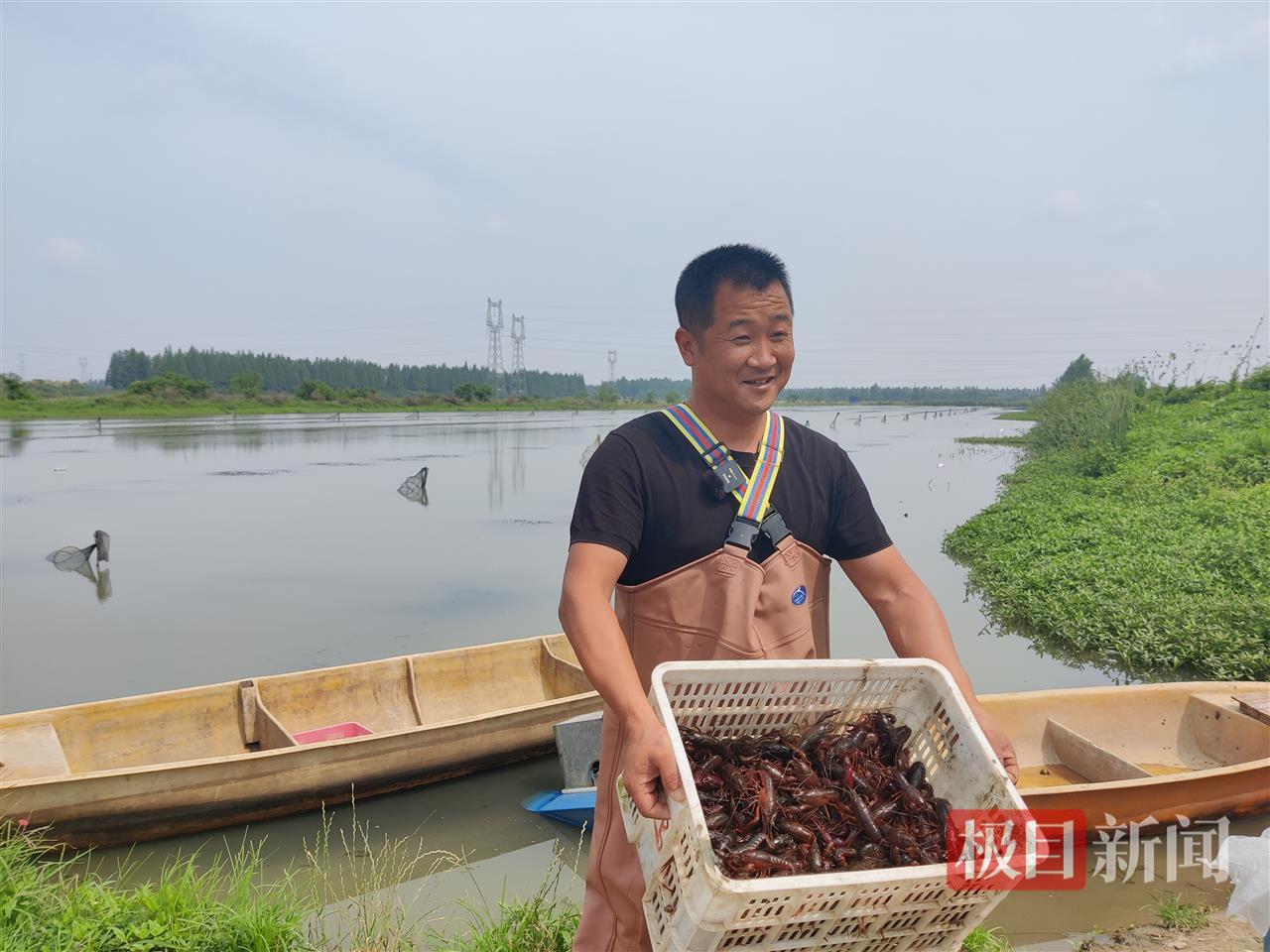 10时许,后湖管理区天新场办事处余岭队的虾农关宏鹏正在虾池旁休息。他今天起获的千余斤小龙虾已经销售一空,万余元销售额已经进了腰包。
