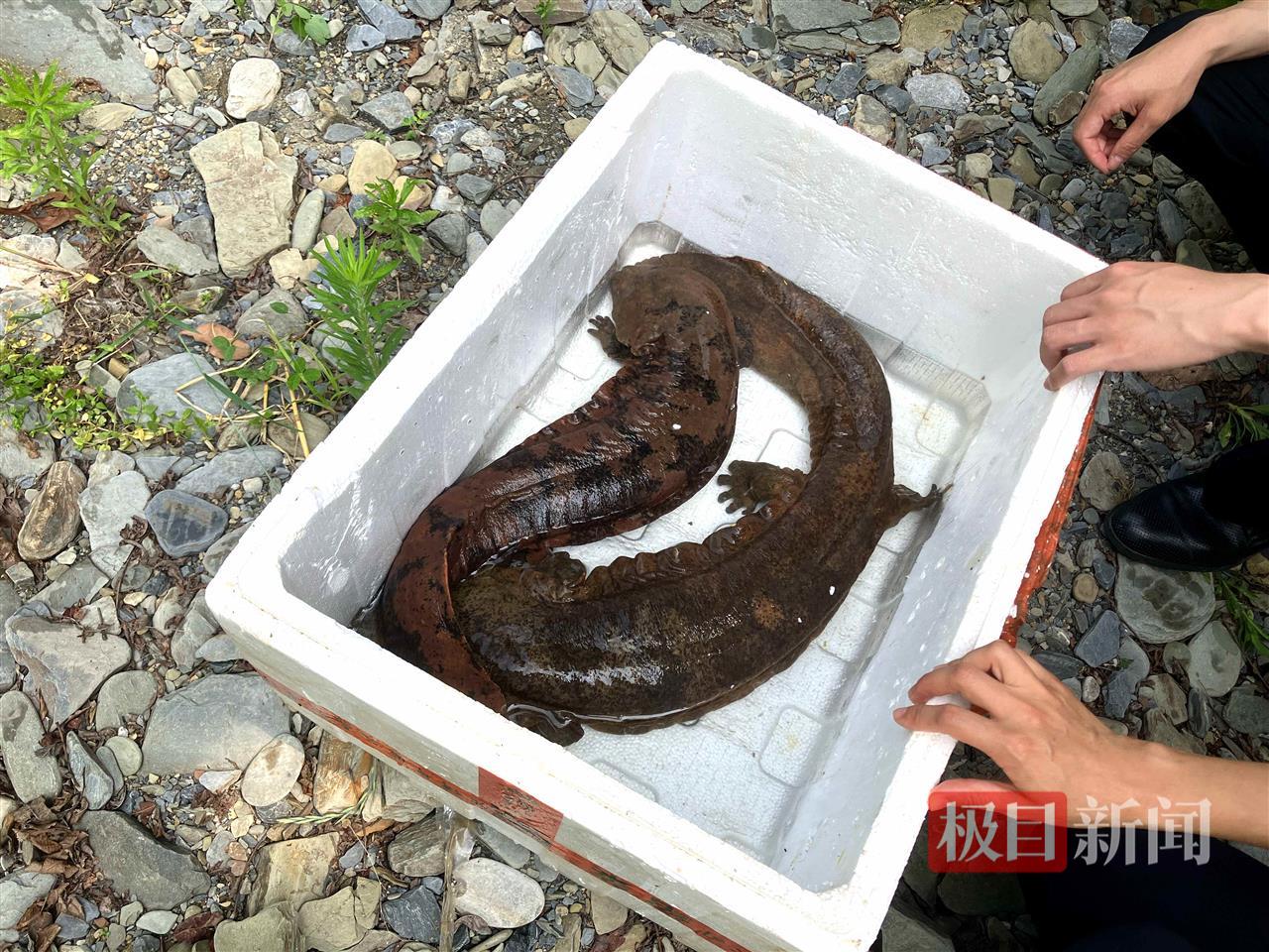 “还是把它们送到自然保护区,稳妥些!”在确认两条娃娃鱼健康状况良好后,民警找来泡沫箱装好,将它们送到湖北五道峡国家级自然保护区。“这的确是两条大鲵,大的体长约90厘米、重约5kg,小的体长约60厘米、重约3kg,都是成年个体,健康条件良好。”保护区工作人员推测,应该是夜间觅食进入小河迷了路:“暂时把它们放在救助站进行养护,待各项检测达标后再将它们放归大自然。”