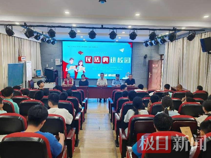 为增强青少年法治观念,培养其知法、守法、用法意识,5月26日,湖北襄阳市公安局东津公安分局联合东津六两河社区走进新民中学开展民法典普法宣传活动,为同学们带来一堂干货满满的法治教育课。