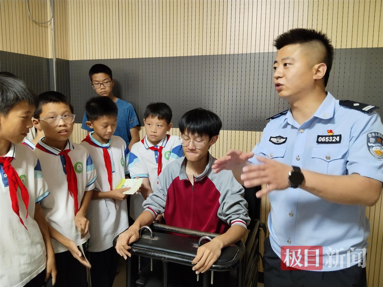 在派出所值班室,民警向小警员们展示了辖区雪亮工程、智慧探头等监控分布图,讲解了公安机关如何应用科技手段进行案件侦办,展示了公安机关有案必破、执法必严、违法犯罪必究的执法思想,引导孩子们要自觉遵守法律法规。在民警的指导下,小警员们还参观了办案区,坐上讯问椅,民警告诫大家切勿以身试法。