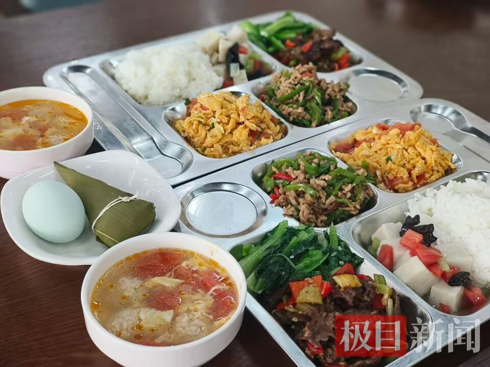 此外,食堂还有新鲜的时令蔬菜及汤品,可免费续加,并免费提供粽子、盐蛋、赤壁青砖茶饮、饮用水等。