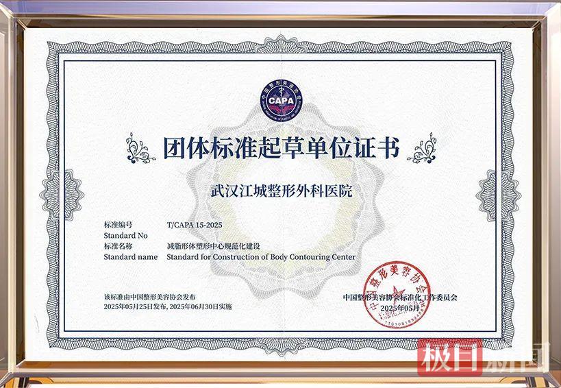 为贯彻落实国家卫健委提出的“体重管理年”三年行动计划,加强医疗美容行业监管工作的精神,进一步推动行业规范化发展,由中国整形美容协会标准化工作委员会组织制定,武汉江城整形外科医院参编的《减脂形体塑形中心规范化建设》(T/CAPA15-2025)及《医疗美容从业人员执业规范》(T/CAPA16-2025)两项团体标准已完成编制并通过审定。