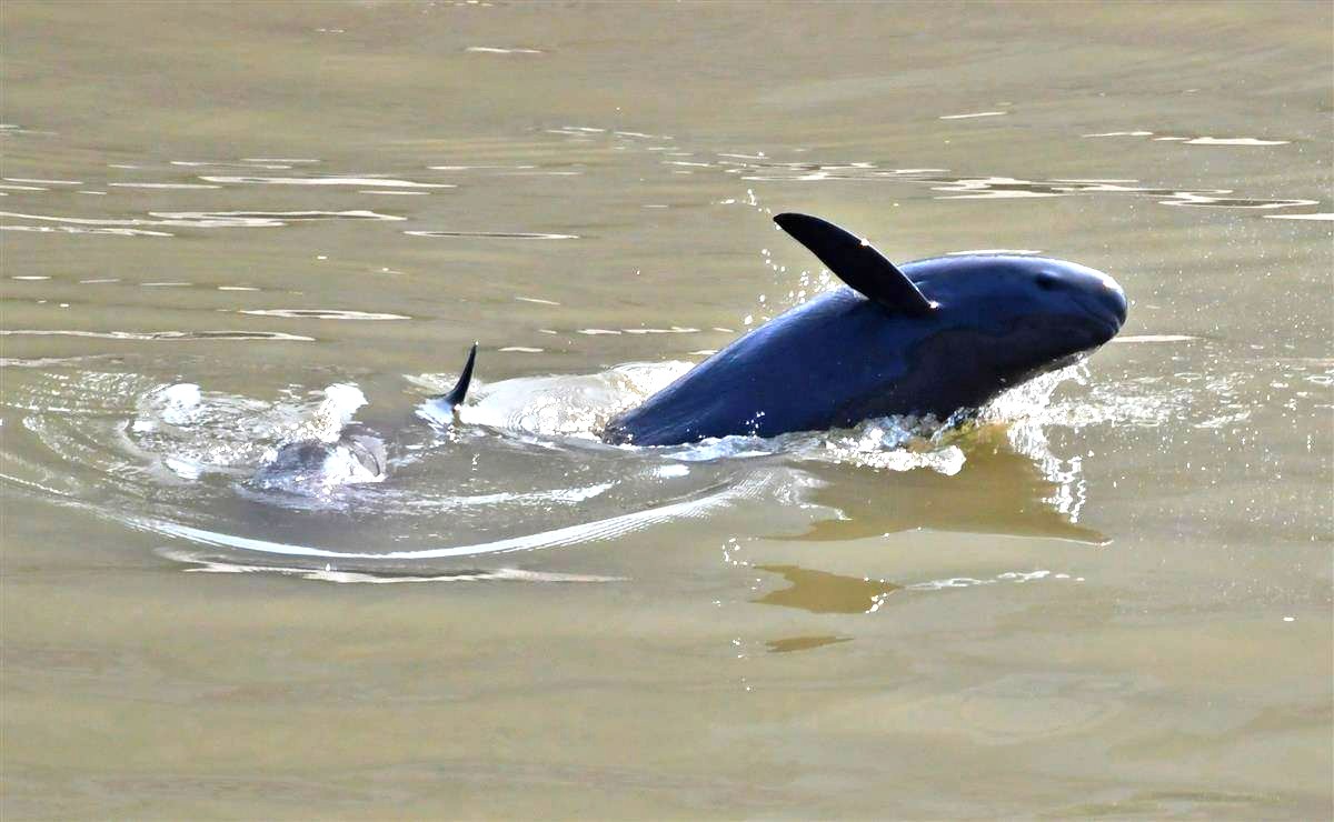 2024年11月7日,长江江豚在宜昌市葛洲坝下游水域逐浪捕鱼。(湖北日报全媒记者 刘曙松 摄)