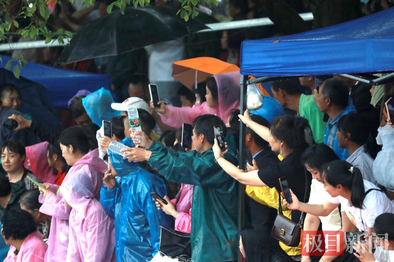 尽管雨势渐密,河岸两侧早已挤满撑伞披蓑的观众。他们中有拄着拐杖的老人,有骑在父亲肩头的孩童,更有挥舞队旗的拉拉队。当第一支龙舟破浪而出时,震天的呐喊瞬间压过雨声。
