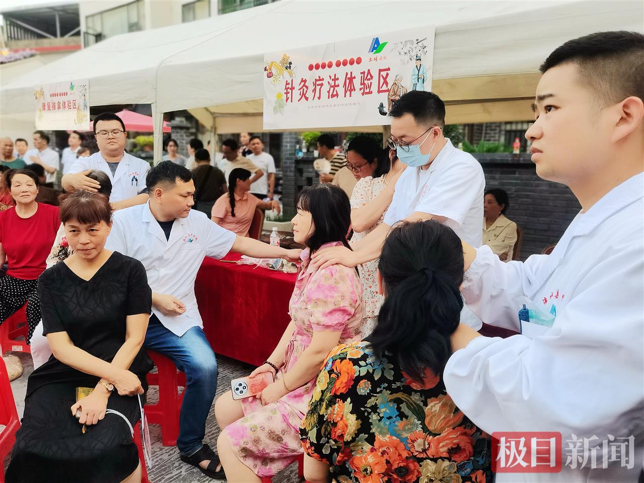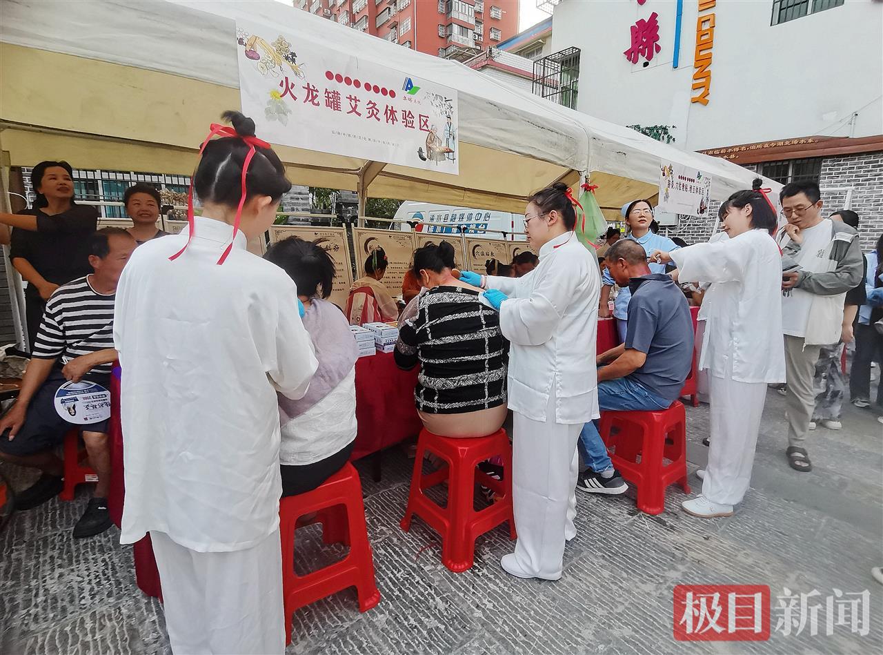在中医药展示区,来自县中医院和县内中药材生产加工企业,现场向居民展示中药炮制、中药膏方熬制技术、浠水道地中医药材产品和文创礼品等;在中医理疗体验区,县中医院医务人员现场为有需求的居民体验艾、灸、拔罐、推拿等中医特色疗法;在中医药膳品尝区,县中医院以中药材为原料制作的养生保健茶饮,兼顾口味和养生功效,让路过的市民驻足尝试;在义诊服务区,县中医院中医专家现场为群众开展脉诊、舌诊、体质辨识和血压血脂测试等义诊服务。