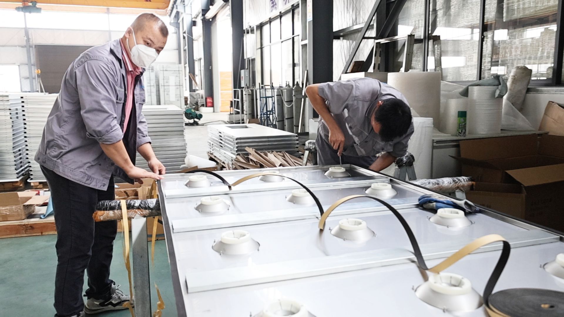 “工厂主要生产洁净彩钢板、洁净不锈钢制品等产品,广泛应用于生物制药、电子半导体、新能源、航天航空、科研院所、公共卫生等行业的洁净室、洁净厂房、手术室及实验室。”天加新材料生产经理李诗鑫说,企业配备一条103 米长的洁净板材生产线,可生产最长13米的板材,该类长度的生产线,在湖北乃至华中地区尚无第二家。
