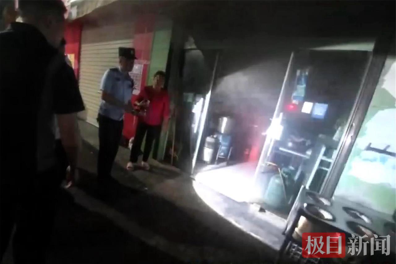 接警后,民警迅速驾驶小型消防车、携带灭火装备赶到早餐店。现场浓烟滚滚,火势正在蔓延,情况万分危急。