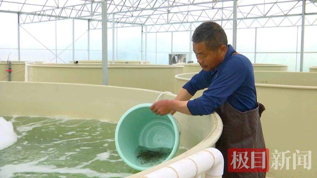 该养殖基地通过将养殖尾水经管道输送至微滤机,过滤鱼粪残渣后回流,实现水资源循环利用。同时,为避免温度波动对养殖效益产生影响,养殖基地通过设置水帘降温系统和封闭棚体形成保温屏障,使棚内温度维持在25℃左右,为鱼苗提供稳定适宜的生长环境,当棚外温度降低时,可以封闭大棚,为鱼苗保温保暖。当棚外温度升高时,可以安装水帘,把棚内温度降下来。据了解,该养殖基地分两期建成,总占地面积达3000平方米,前期大棚建有6个直径6米的养殖桶,新建大棚建有23个直径4米的养殖桶,目前,新桶养殖鱼苗,旧桶养殖成鱼。陈才学告诉记者,今年计划出苗200万尾,分两批生产,第一批94万尾。基地一期的鲈鱼鱼苗销售额在5万元至6万元之间,主要销往四川、河南、湖南、河北等地,当前养殖的一万多尾成鱼预计三个月后出售,销售额预计12万元左右。