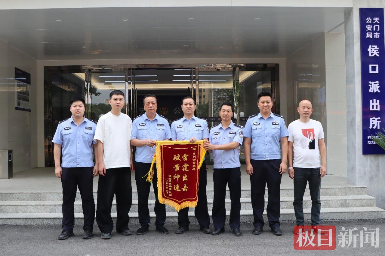 公司负责人为天门警方送锦旗表示感谢