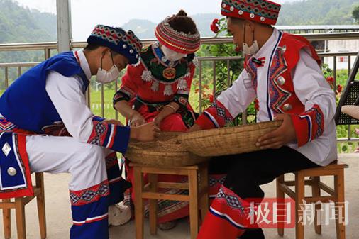 土家飞饼传承人田德顺(右一)指导徒弟挑拣小麦