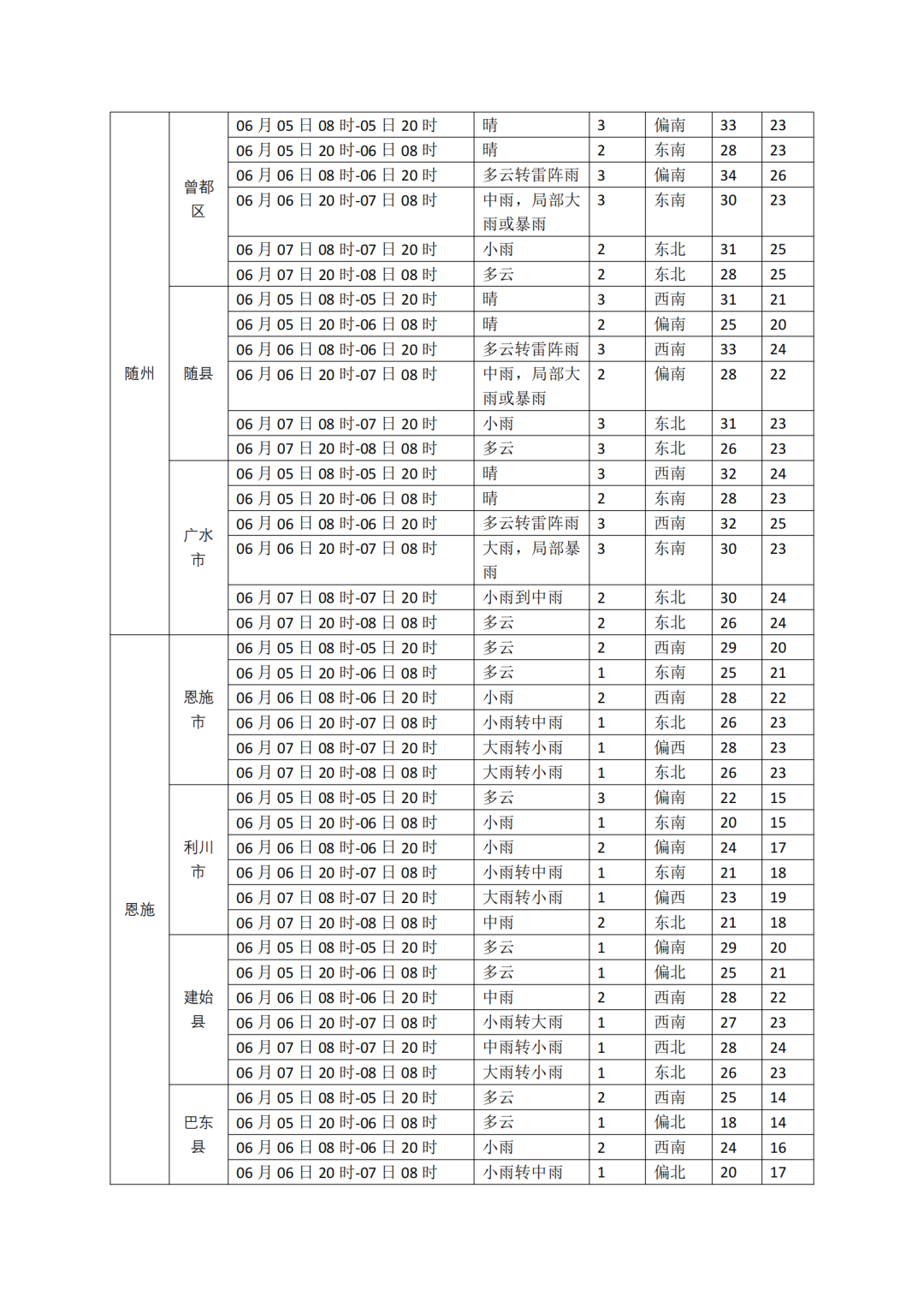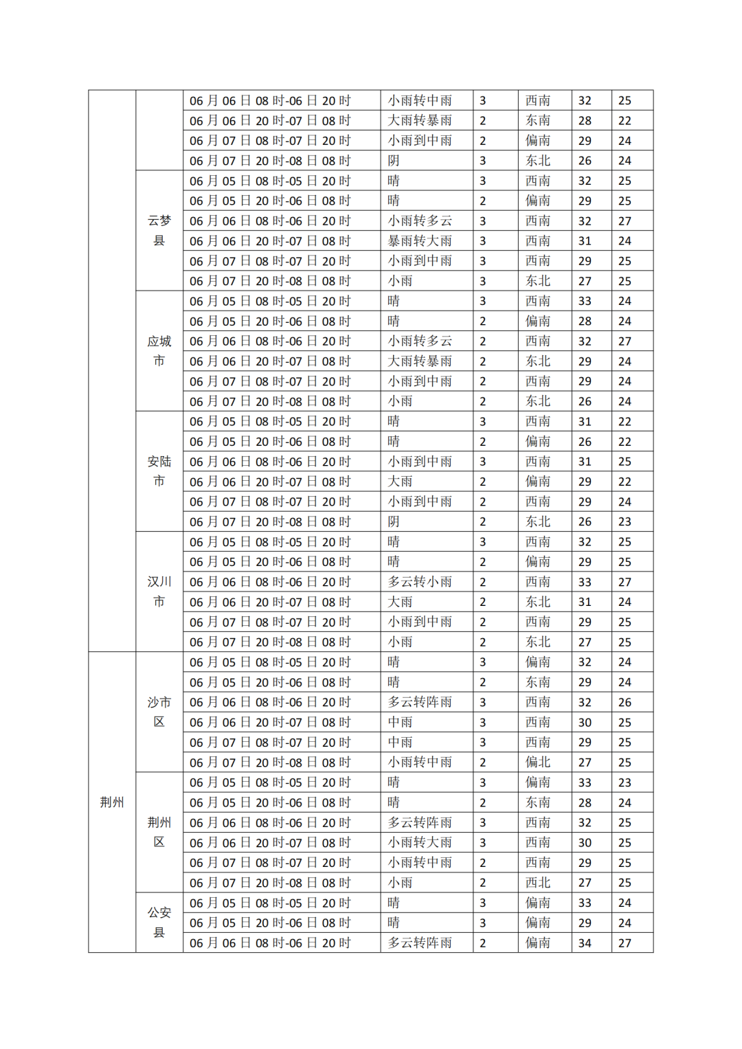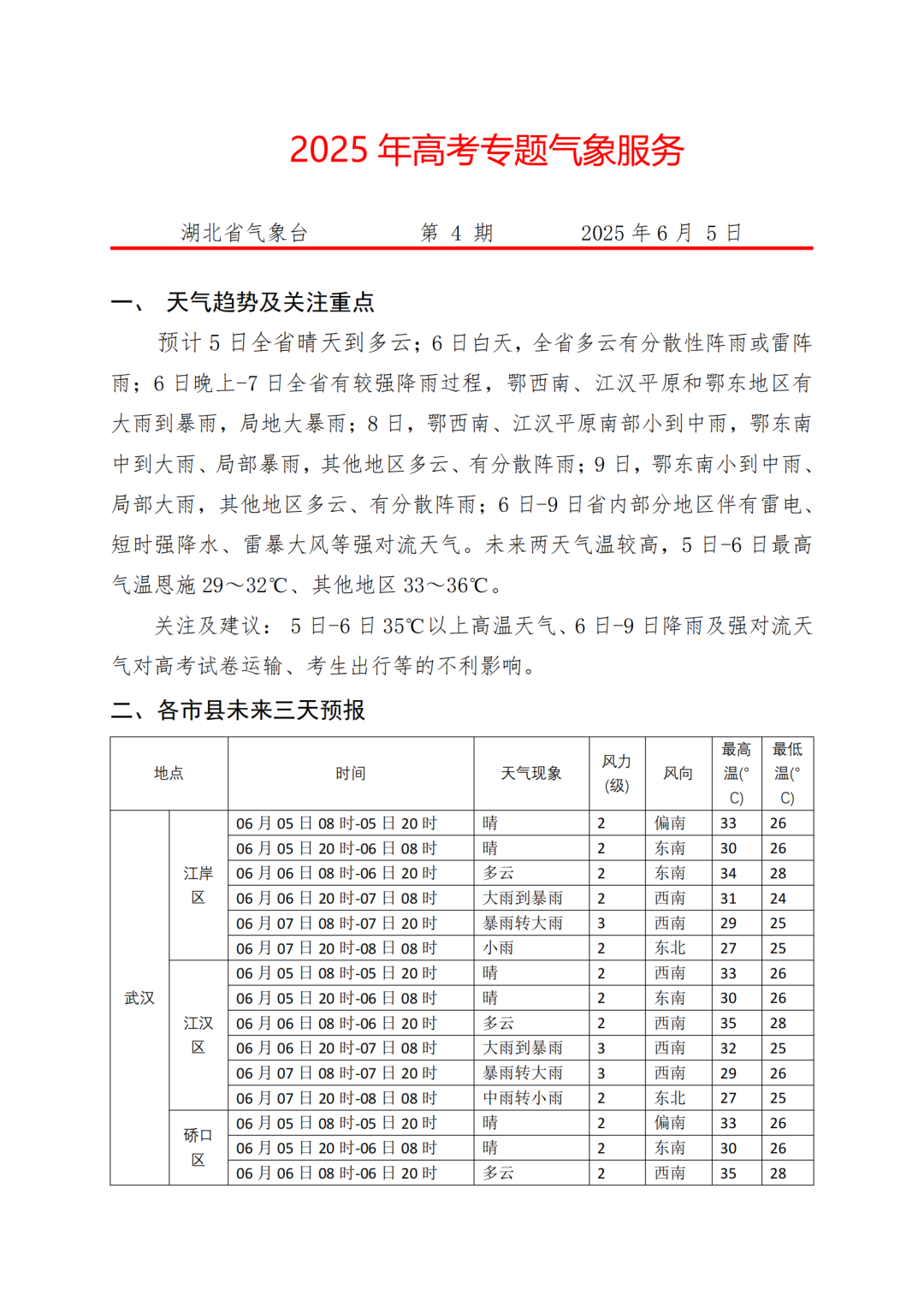 2025年湖北省高考专题气象服务(6月5日)