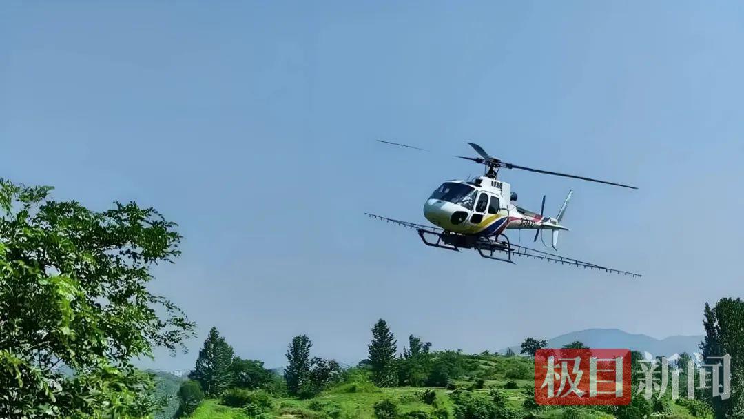 6月5日,新闻记者来到湖北省著名的板栗大县——罗田县,在凤山镇、河铺镇飞防作业现场,两架装满药剂的直升机先后盘旋升空,对成片板栗林实施精准喷防。